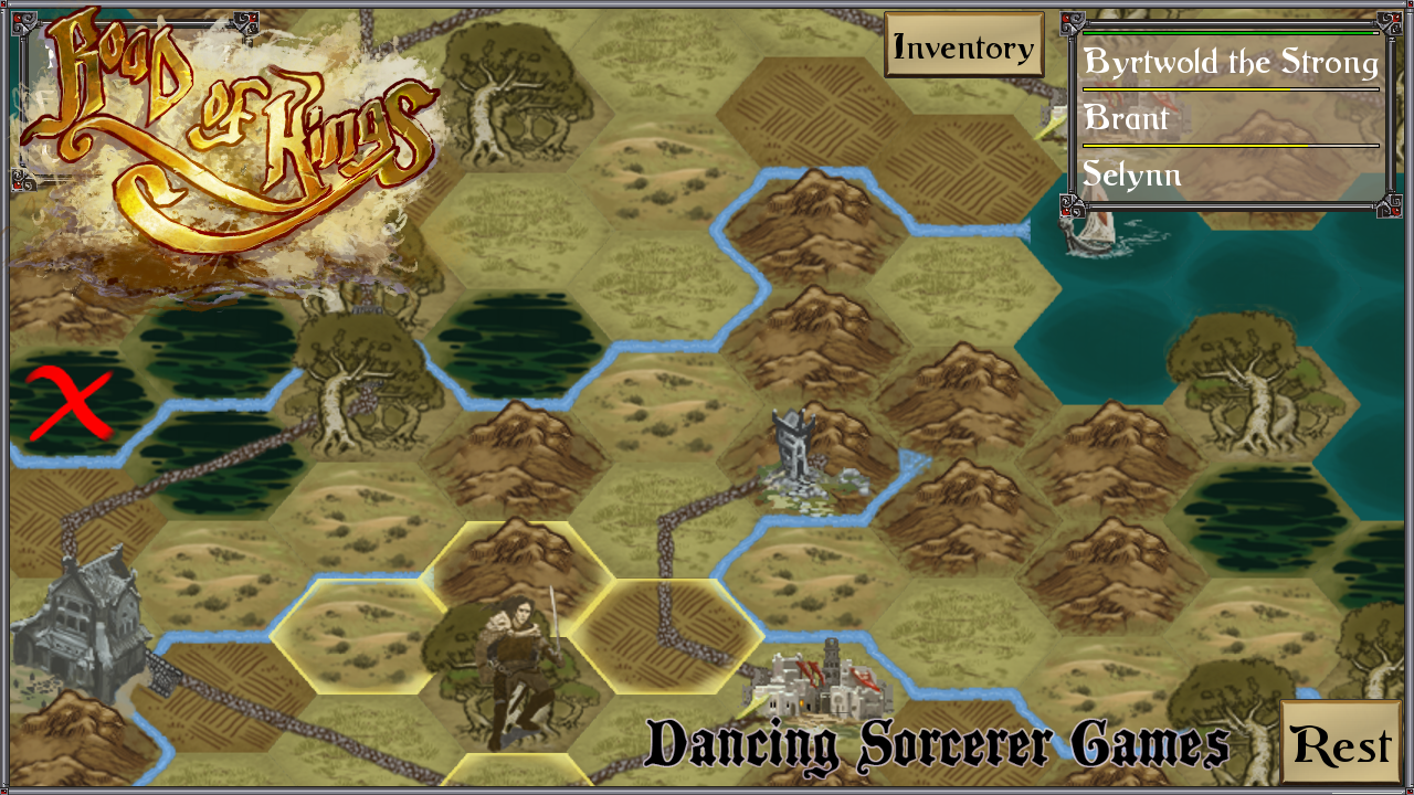 An adventure game where no two journeys are the same! Become the barbarian king! Adventure across a dangerous land where your decisions can, and will, change your fate. Earn your birthright by defeating dangerous foes, forging alliances, and discovering hidden treasures! Inspired by early fantasy board games and RPGs, Road of Kings allows you to experience hours of adventuring on your favorite device.