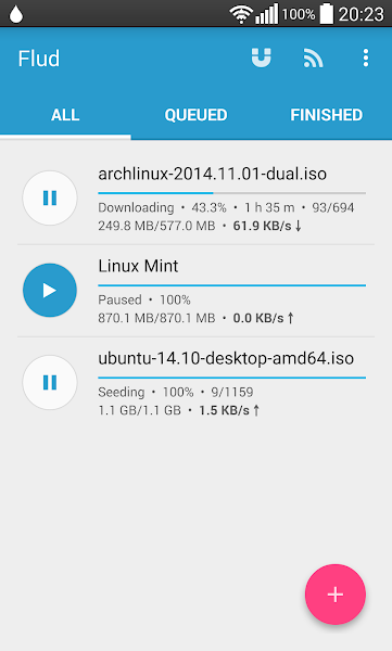 Overview: Flud is a simple and beautiful BitTorrent client for Android. The power of BitTorrent protocol is now in the palm of your hands.